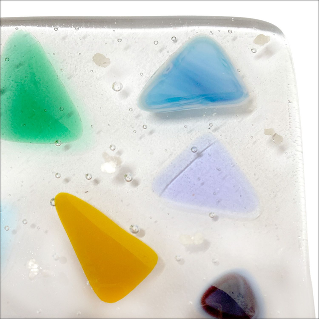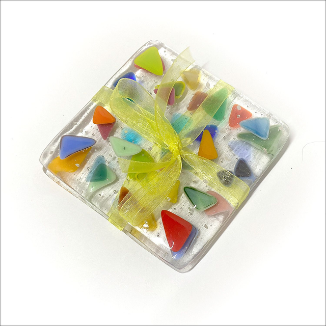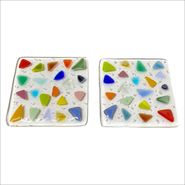 Coasters adorned with multicolour triangles and silver speckles wrapped in ribbon (pack of 2) (Ref CTPk2) 1