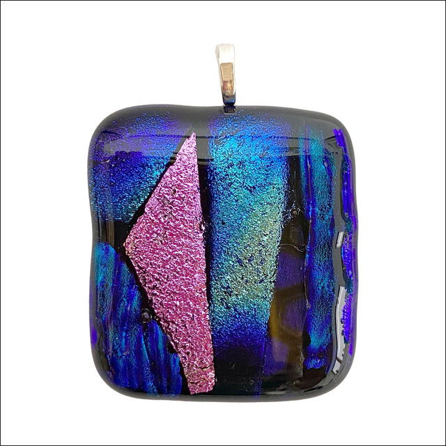 P 1 Blue, turquoise and pink dichroic glass pendant