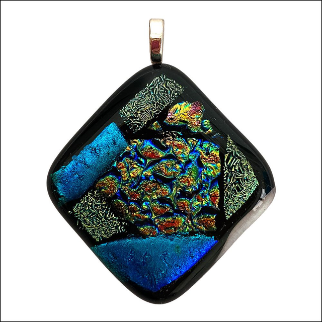 Pendant in sparkling turquoise, mint green and gold dichroic glass (Ref P1)