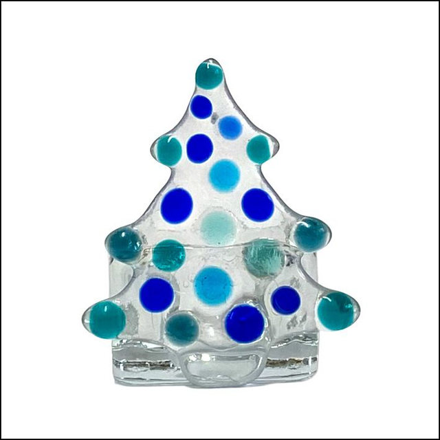 Tea light in Christmas tree shape - Blue and green spots (Ref TLCT 1)